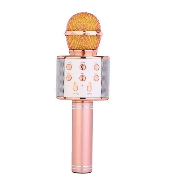 میکروفون اسپیکر مدل WS-858 یک میکروفون همه کاره با قابلیت اتصال بی سیم (بلوتوثی) و باسیم به تلفن های هوشمند اندروید و IOS ، انواع پلیرها و کامپیوتر می باشد. این دستگاه از جنس بهترین مواد ABS و آلومینیوم ساخته شده است . به طور خلاصه می توان امکانات این میکروفون را به این صورت نام برد: بلوتوث نسخه 3, ,ورودی حافظه فلش یا USB ، شیار مخصوص به کارت حافظه، دارای پورت AUX، باتری لیتیومی قابل شارژ ، رادیو، دکمه های تنظیم صدا، ضبط صدا، کارائوکه، 4 حالت تغییر صدا , اسپیکر های قدرتمند و ....