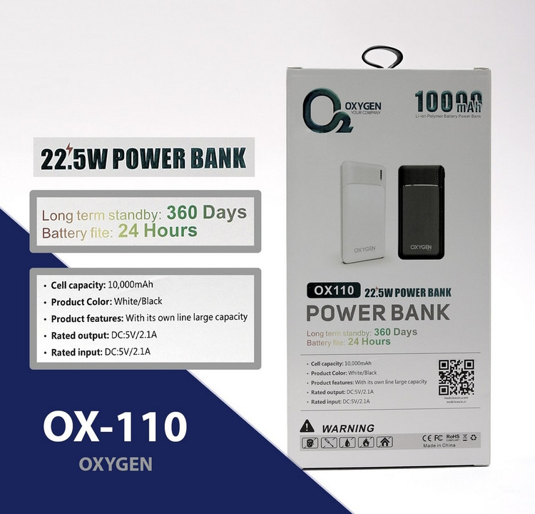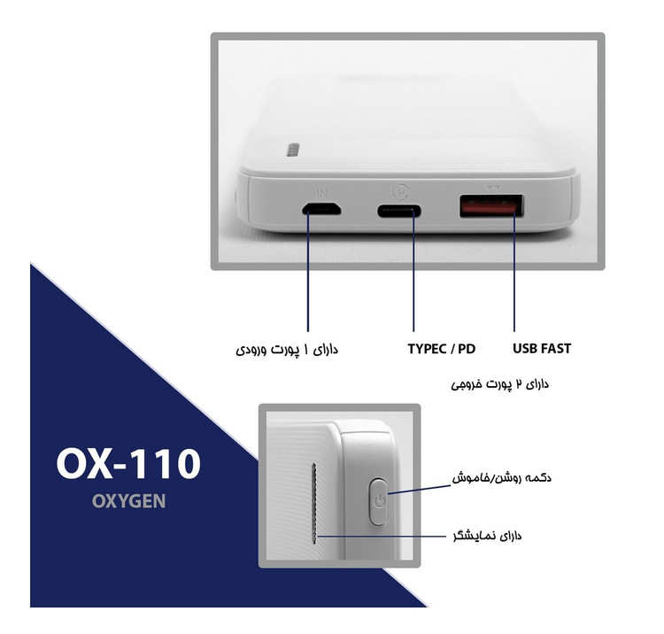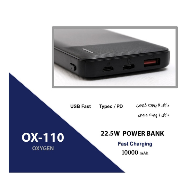 پاوربانک اکسیژن مدل OX110 ظرفیت 10000 میلی آمپر