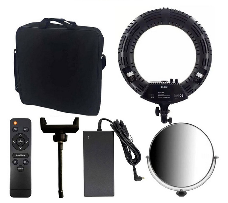 برند : می لوک - MiLook سری : FE مناسب : میکاپ ، تولید محتوا ، کاشت ناخن وزن: 2 کیلوگرم قدرت 96 وات تنظیم نور از 0 تا 100 درصد قطر خارجی 45 سانتی متر نوع اتصال اینه و هولدر : پیچی اقلام جعبه : هولدر موبایل،ریموت،اداپتور، کیف حمل