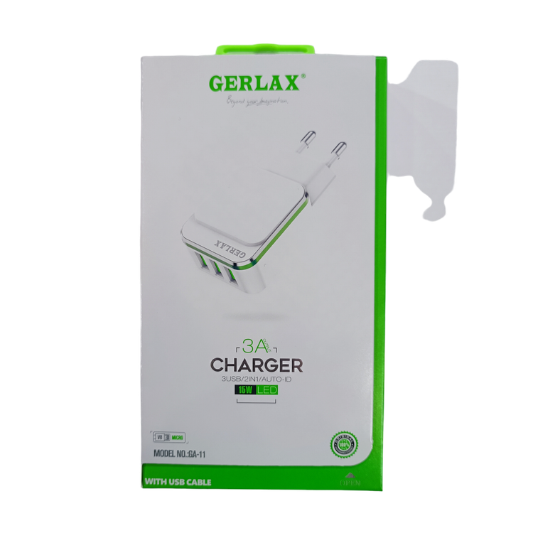 کابل شارژ و آداپتور اندروید جرلکس مدل Gerlax GA-11 قابلیت ارائه شدت جریان خروجی 15 وات را دارا بوده و پروسه شارژ کردن دستگاه های هوشمند توسط آن با سرعت نسبتا مناسبی صورت می گیرد. این شارژر دیواری حداکثر شدت جریان خروجی 3 آمپر و ولتاژ خروجی 5 ولت پشتیبانی می کند و قابلیت استفاده از آن برای شارژ کردن طیف وسیعی از گوشی های هوشمند وجود دارد.