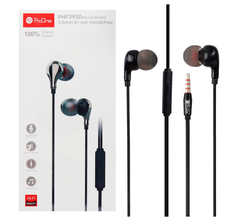 هندزفری سیمی مدل PHF3930 از سری Murra یکی از محصولات با کیفیت و با دوام شرکت پرووان ProOne می باشد، که قابلیت های مانند پخش موسیقی و مکالمه تلفنی را برای شما فراهم می آورد. طراحی این محصول از نوع زاویه دار بوده که به خوبی درون گوش جای می گیرد. سرگوشی های نرم این هندزفری از جنس سیلیکون مرغوب بوده و به آسانی داخل گوش قرار گرفته و تمام فضای داخلی آن را پوشش می دهد. بنابراین سرو صداهای محیطی در هنگام پخش موسیقی مزاحمتی برای شما ایجاد نکرده و در استفاده طولانی مدت مزاحمتی برای گوش ایجاد نمی کند. جنس بدنه گوشی ها از پلاستیک با کیفیت بوده که در برابر ضربه از مقاومت مناسبی برخوردار است. این محصول در دسته هندزفری های با سیم جای دارد و می توان آن را از طریق جک 3٫5 میلی متری به کامپیوتر، لپ تاپ، موبایل، تبلت، موزیک پلیر و به طور کلی تمام دستگاه های دارای پورت 3٫5 میلی متری متصل نمود. هندزفری ProOne Murra Series PHF3930 دارای فرکانس پاسخگویی 20 هرتز تا 20 کیلوهرتز است و توانایی پخش تمام صداهای قابل شنیدن در محدوده شنوایی انسان را دارد. این محصول دارای درایو 10 میلیمتری به همراه امپدانس 16 اهمی و حساسیت 106 دسیبل می باشد، که باعث شده صدای خروجی از کیفیت و بیس مناسبی برخوردار باشد. طول کابل این هندزفری 120 سانتی متر بوده و از انعطاف و نرمی خوبی برخوردار می باشد و کمتر دچار گره خوردن و در هم پیچیدن می شود. بر روی این کابل یک کنترلر تعبیه شده که میکروفن دستگاه و کلیدهای کنترل پخش موسیقی بر روی آن قرار دارد. میکروفن به کار رفته بر روی این محصول قابلیت فیلتر نویز محیط را داشته و صدا را به صورت شفاف انتقال می دهد. این هندزفری در گوش دادن به موسیقی، تماشای فیلم و مکالمه های تلفنی عملکرد قابل قبولی داشته و انتظارات شما را برآورده می کند