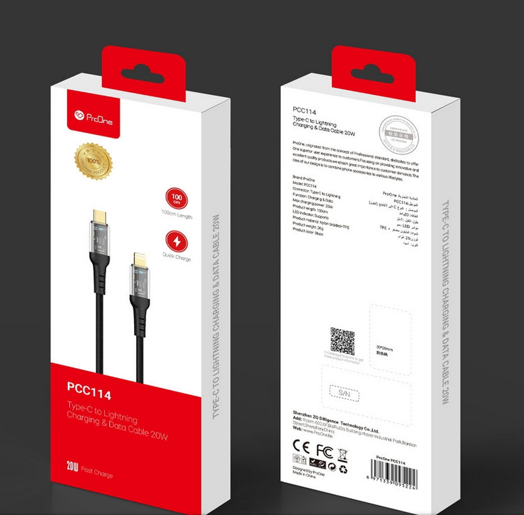 برند ProOne جزو شرکتهایی است که طی مدت زمانی کوتاه پیشرفت چشمگیری داشته و کابل های برند پرووان دارای استاندارد لازم و با کیفیت ساخت مناسب هستند. کابل تبدیل USB-C به Lightning پرووان مدل PCC114برای انواع گوشی ها و تبلت های مجهز به درگاه Lightning مناسب بوده و جنس آن از TPE می باشد که در برابر کشیدگی ،پیچ خوردگی و پارگی از مقاومت خوبی برخوردار است. کابل لایتنینگ پرووان مدل PCC114، به طولی برابر 100سانتی متر دارد و از استاندارد های ایمنی و سلامت بالایی بهرمند می برد. این کابل با مجهز بودن به تکنولوژی شارژ سریع با خروجی حداکثر 20w و انتقال سریع اطلاعات برای شارژ یا انتقال داده در انواع موبایل، تبلت و سایر دستگاههای دارای درگاه Lightning مناسب است. بنابراین میتوانید از آن برای انتقال اطلاعات تلفن همراه یا سایر دستگاه های سازگار استفاده کنید و یا برای شارژ به کمک انواع شارژ دیواری، فندکی و رومیزی مجهز به فناوری QC، به کار ببرید.